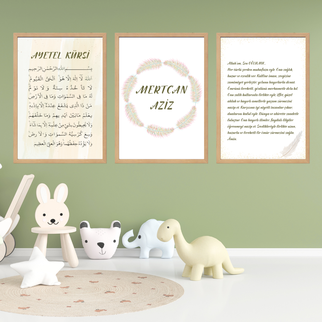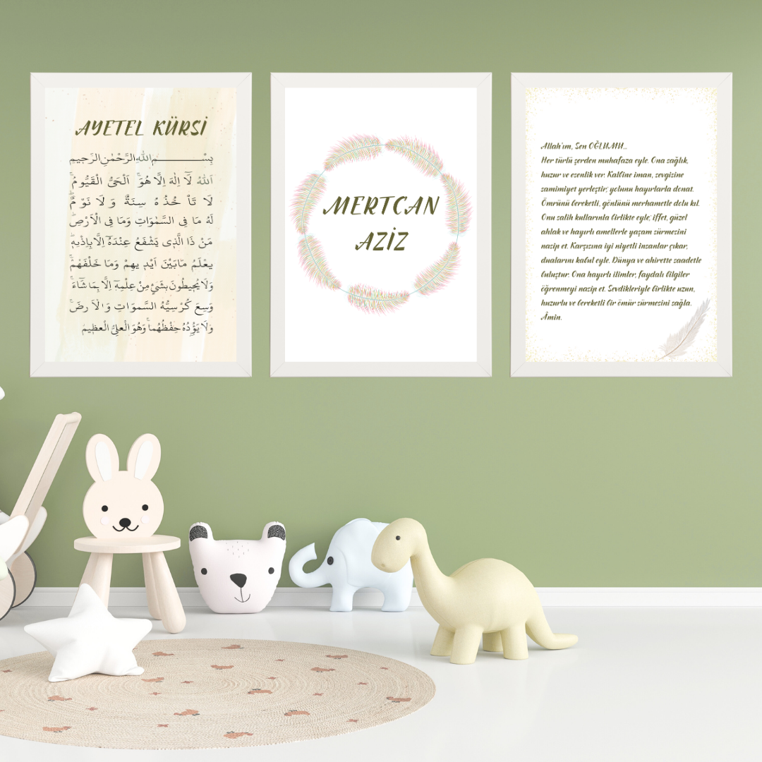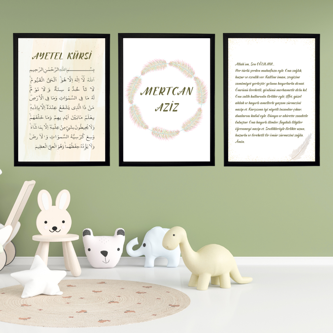 Ayetel Kursi ve Oğluma Dua 3'lü Set Çocuk Odası İsimli Tablo