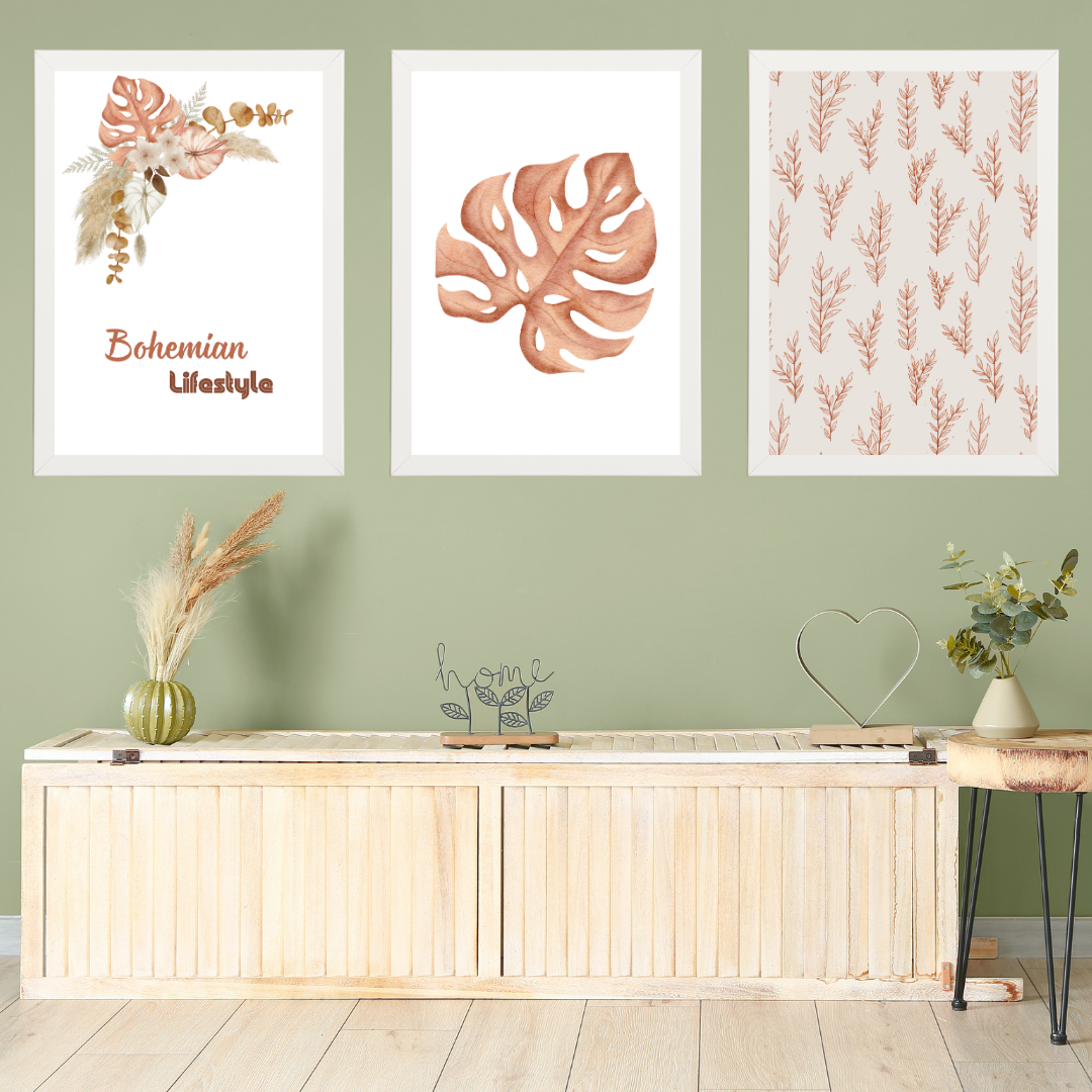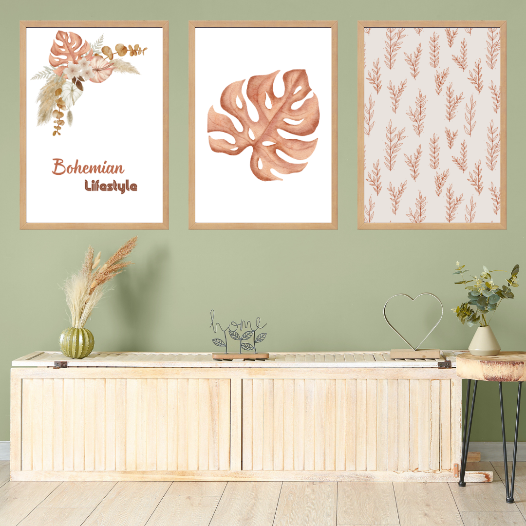 Bohem 3, 3'lü Set Ahşap Çerçeve Oda-Mutfak Tablosu