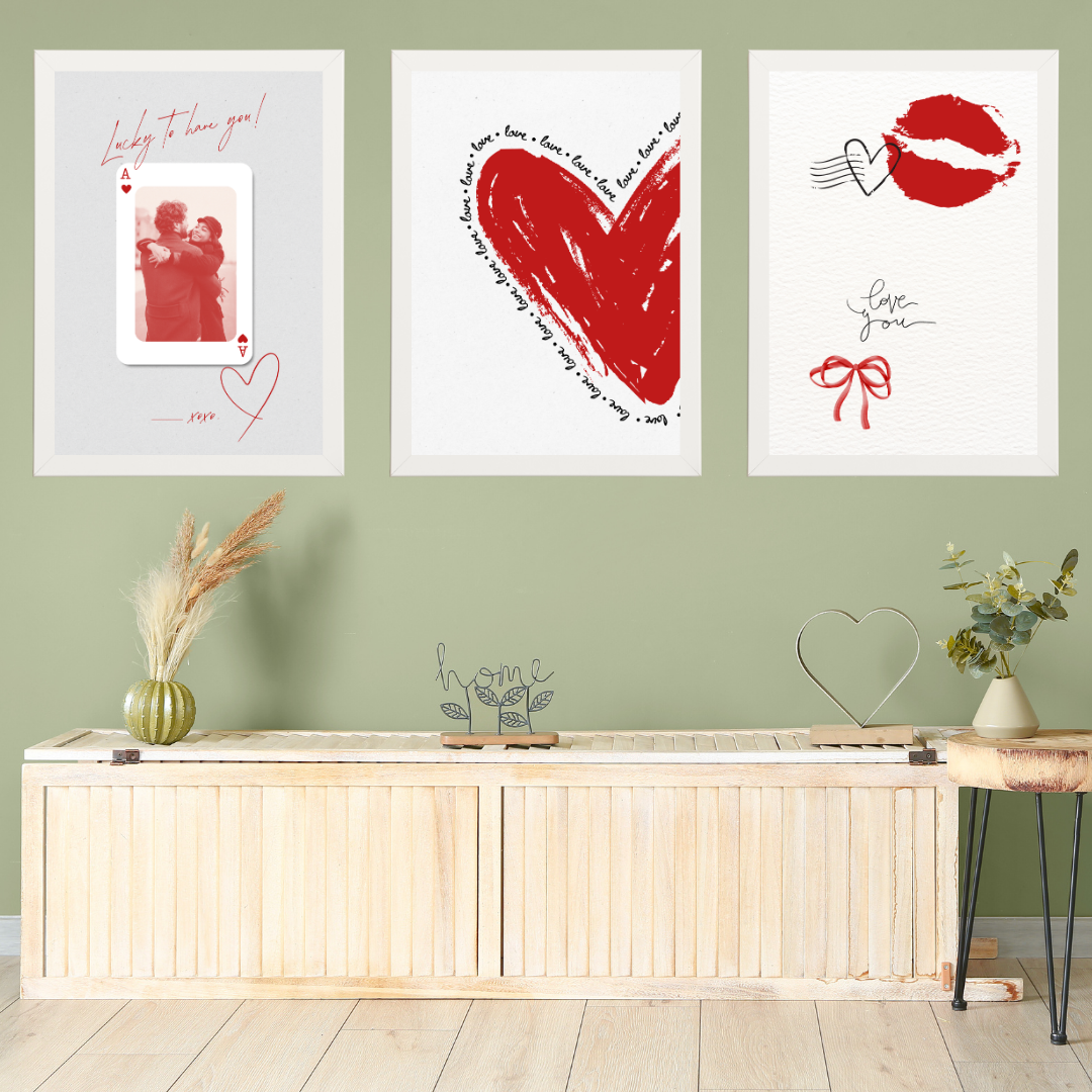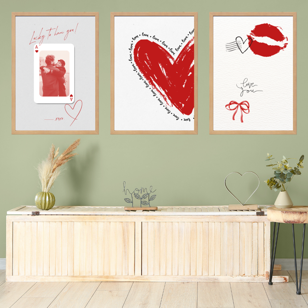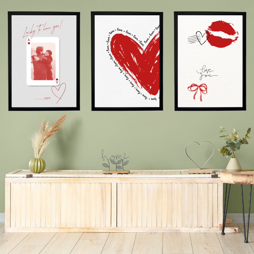 Şanslı Aşk 3'lü Set Ahşap Çerçeve Resimli Tablo