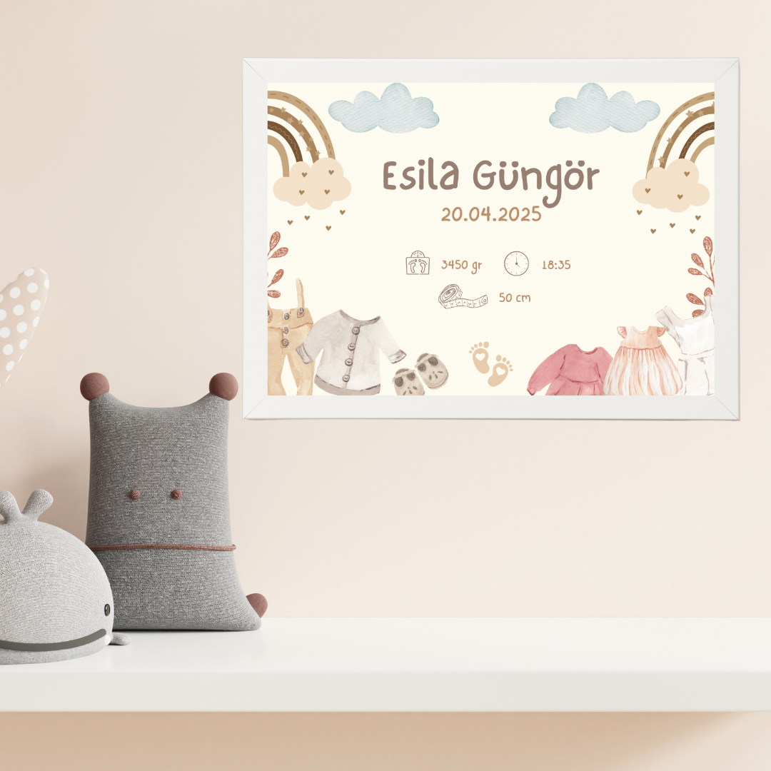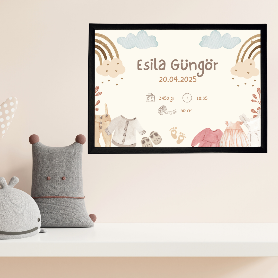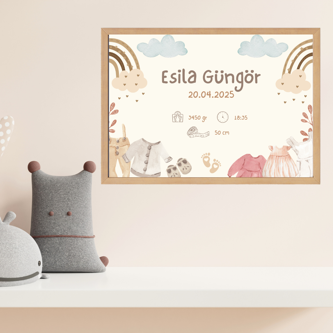 Kıyafetli Bohem Çocuk Odası Doğum Tablosu (kişiye özel)