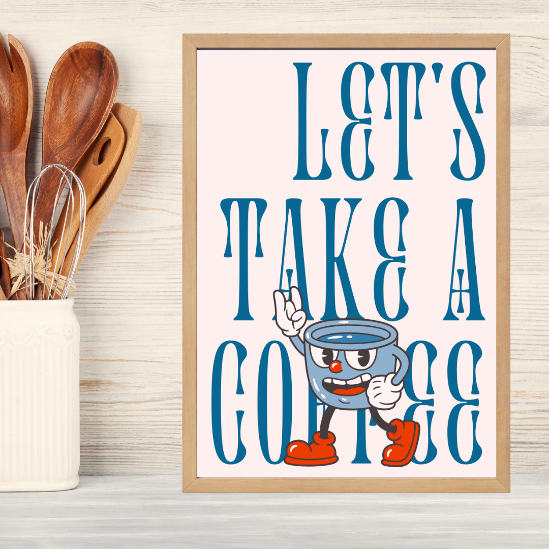 Kahve İçelim! Ahşap Çerçeve Oda-Mutfak Tablosu
