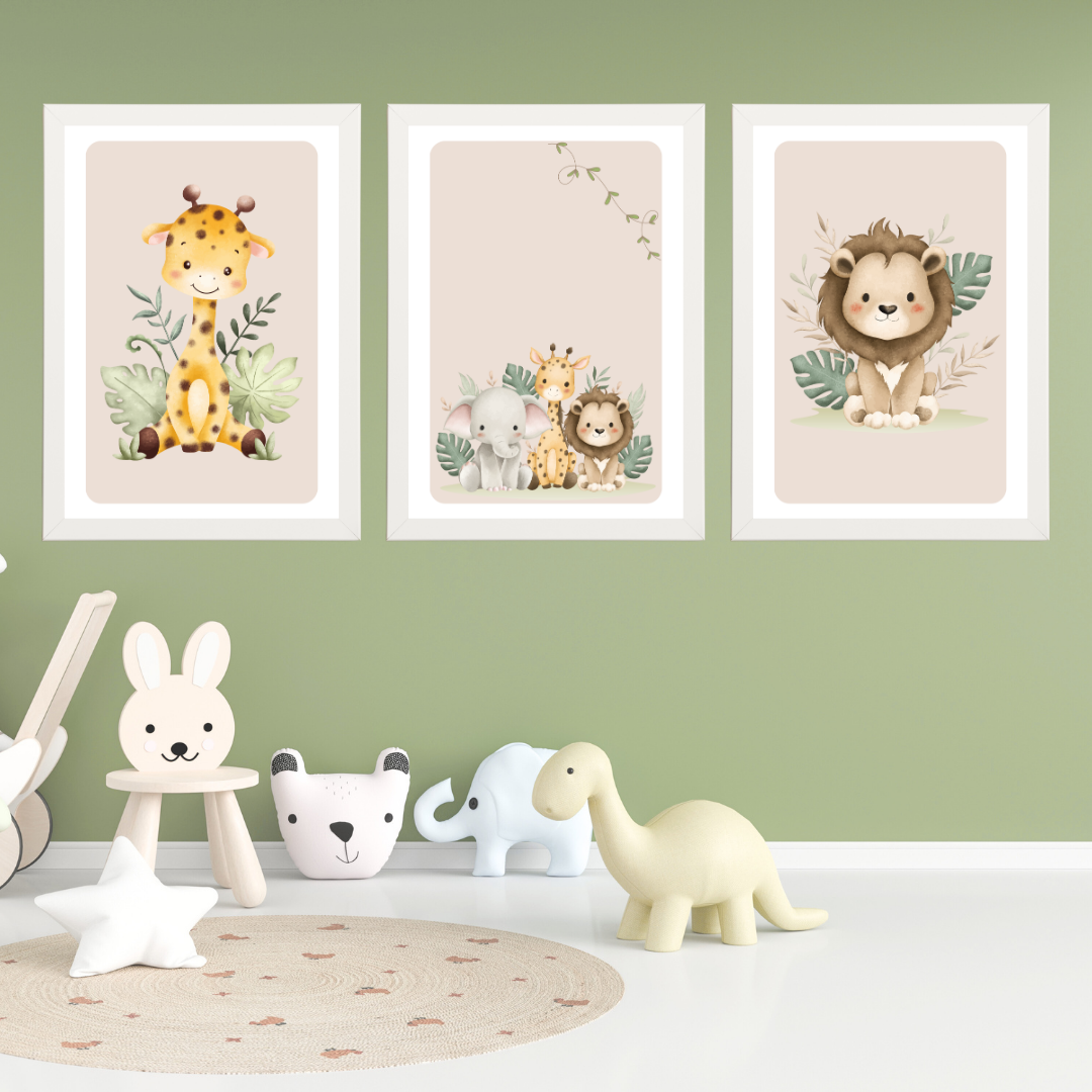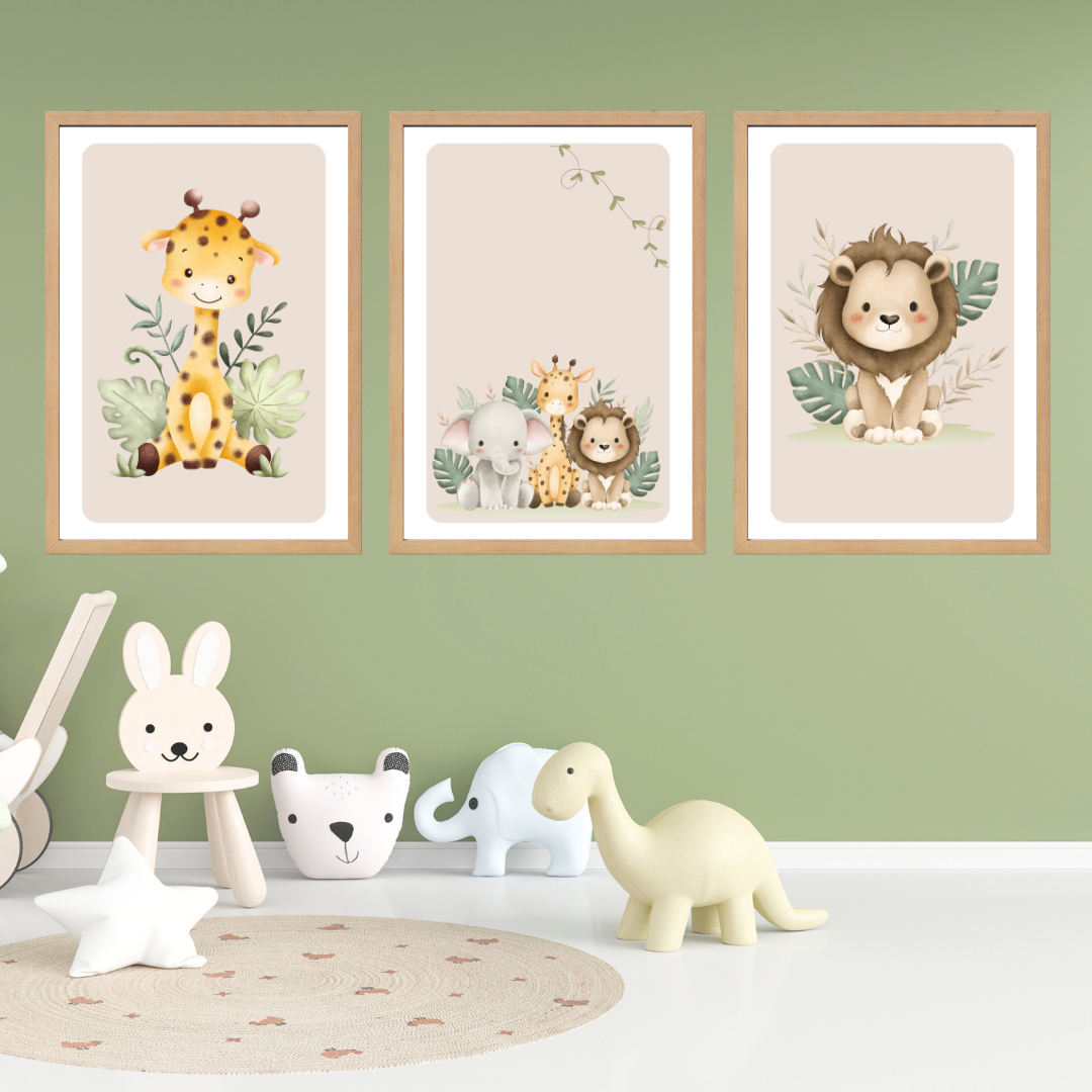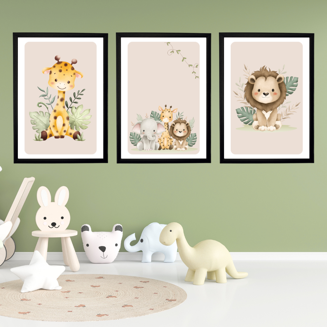 Hayvanlar 3'lü Set Çocuk Odası Tablo